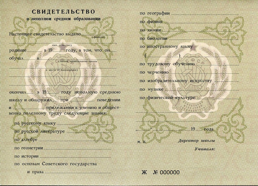 - При желании вы можете заказать аттестат школы 1988 года времен СССР;