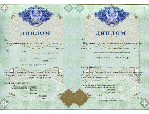 - При изготовлении дипломов ПВУЗа Казахстана 1998 - 1999 гг. используем бланки со всеми элементами защиты;