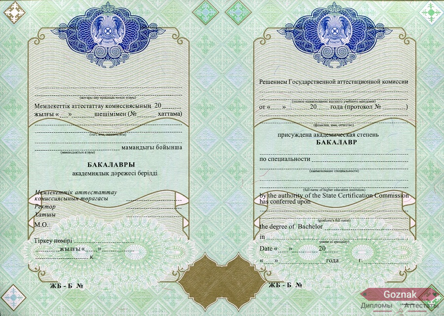 Компания «Гознак-Дипломы» успешно работает на рынке более 15 лет и предлагает Вам купить диплом ВУЗа Казахстана 2011 - 2025 гг. выгодно по хорошим ценам на настоящем бланке Гознак с оригинальными печатями и подлинными подписями. Документы имеют все степени защиты, оформлены по государственным нормам и с учетом особенностей конкретных учебных заведений. Диплом ВУЗа Казахстана 2011 - 2025 гг. на 100% соответствуют подлинникам, поэтому проблем точно не доставят, которые без опаски можно предоставлять в отдел кадров: