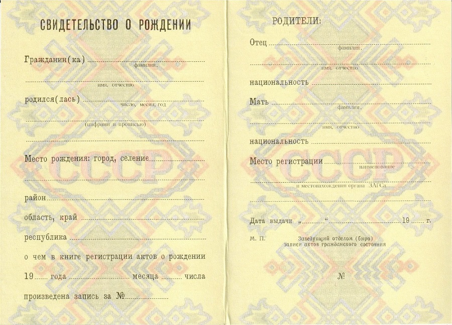 Образцы свидетельств о рождении СССР: